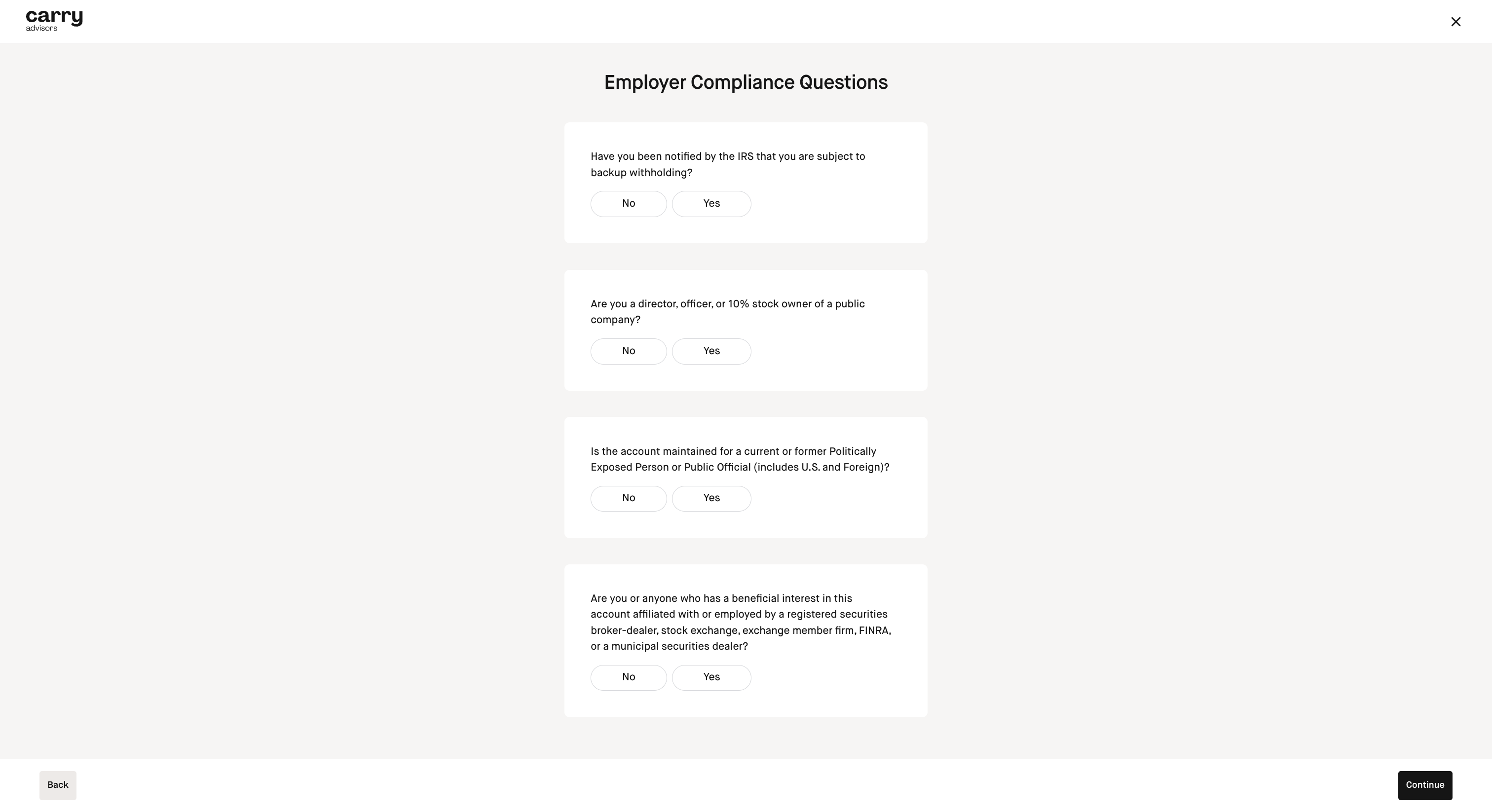 Step 14: Answer the Employer Compliance questions and click 'Continue'